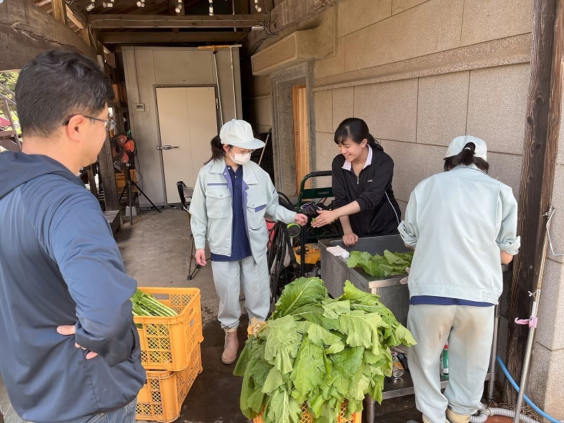 6月第一週、佐久平総合技術高等学校の学生が授業の一環として、地域企業での職業体験をするため当施設を訪れました。サスティナブル堆肥製造、野沢菜の収穫と漬物づくり、乾燥野菜のHANAVEGEの製造と販売店への納品まで、一連の流れを3日間かけて体験していきました。